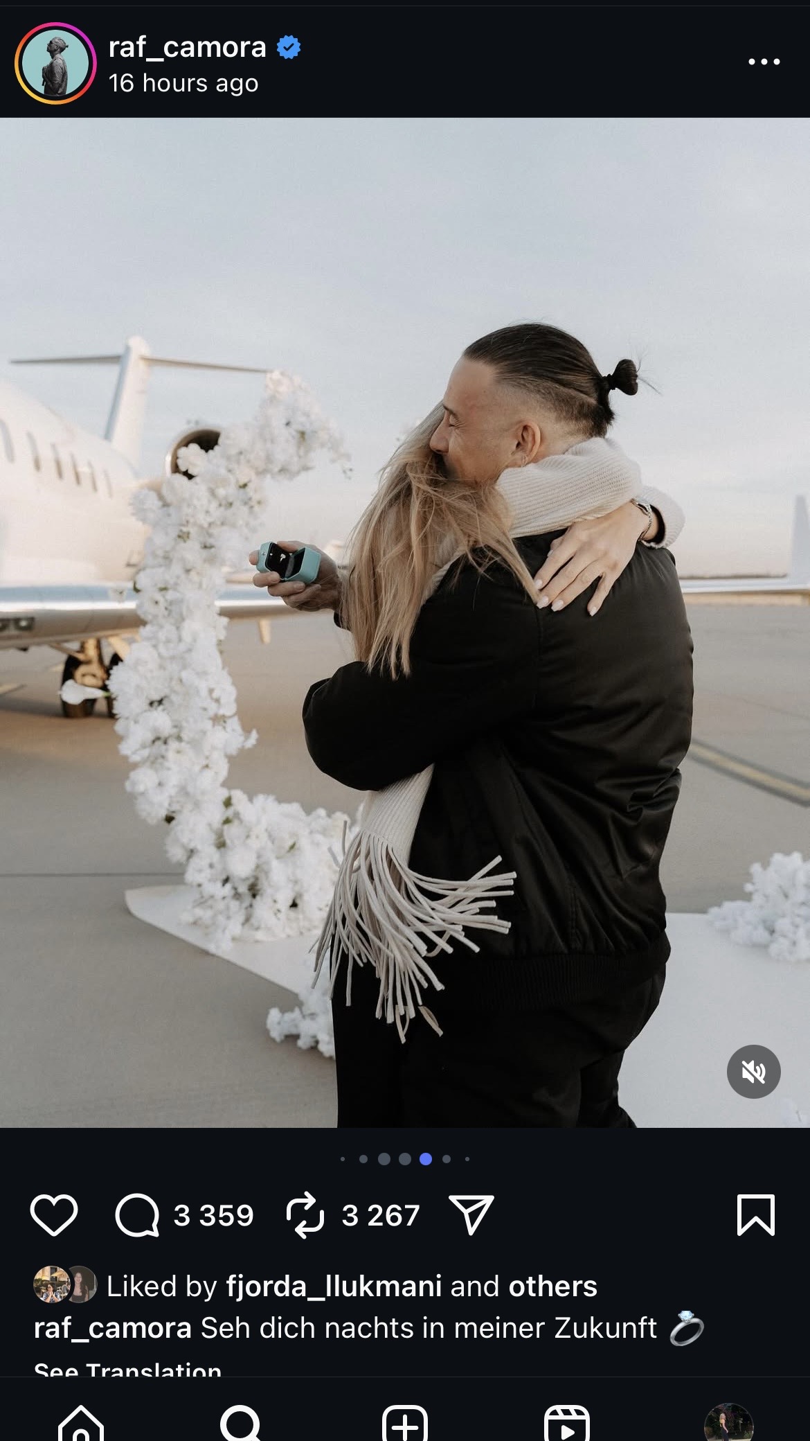 November 3, 2025Reperi i njohur austriak, Raf Camora, ka bërë një hap të rëndësishëm në jetën e tij private duke i propozuar për martesë partneres së tij me origjinë shqiptare, Nadine Krena. Lajmi është bërë publik nga vetë ai përmes një postimi në Instagram